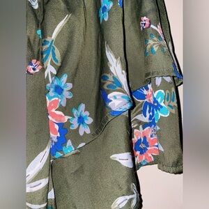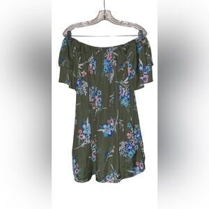 Terra & Sky Women Floral Ruffle Off Shoulder Top 1X Flutter Sleeve Cottagecor