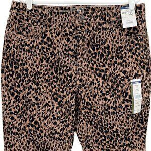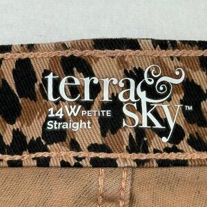 Terra & Sky Women Straight Stretch Brown Black Leopard Denim Jeans Plus 14WP NWT