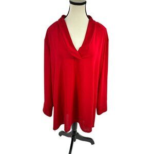 Terra & Sky Womens 2X Red Blouse Long Sleeve Cowl V Neck Plus Size Top