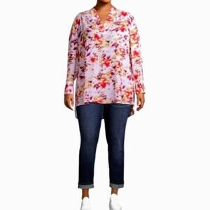 Terra & Sky Womens 2X Tunic Top Plus Size Multi Color Long Sleeve V Neck NWT