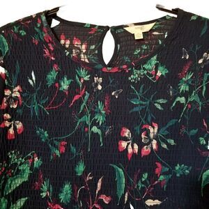 Terra & Sky Womens Blouse Blue Floral Size 1X Plus Textured Sheer Peasant Fall