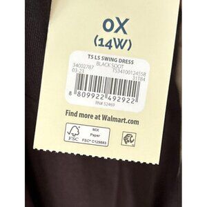 Terra & Sky Womens Dress Plus Size 0X Black Long Sleeve Knit Swing Dress V Neck