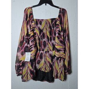 Terra & Sky Womens Long Sleeve Babydoll Top Plus Size 4X NWT Ruched Sheer Club
