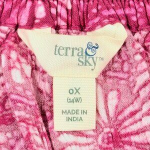 Terra & Sky Women's Off Shoulder Batik Geometric Pink Maxi Dress Size 0X 14W NWT