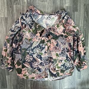 This Terra & Sky plus size blouse features a vibrant floral print, button front closure, soft lightweight fabric, and flattering design. It’s versatile for casual, work, or dress-up wear. The blouse is in good condition with no major flaws to report. Please check photos to see exact color, pattern, and any minor wear.