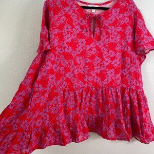 Terra & Sky Womens Plus 3X Floral Tiered Tunic Top Short Sleeve Swing Shirt