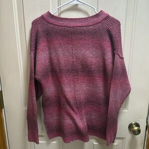 Stay cozy and stylish with this beautiful ombré striped pink V-neck sweater. Perfect for any casual outing. This item is in good used condition so there are some minor imperfections such as pilling.