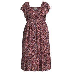 Terra & Sky Women's Plus Flutter Sleeve Floral Midi Dress Size 5X 32W 34W New