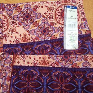 Terra & Sky Womens Plus Leggings Capri Size 2X, 3X High Rise Patchwork Design