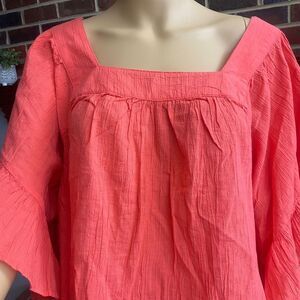 Terra & Sky Women’s Plus Size 0X 14W Coral Orange Square Neck Blouse Ruffle New