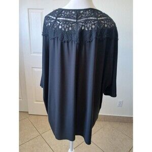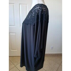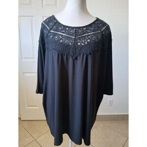 Terra & Sky Women's Plus Size Black Lace Detail Dolman Sleeve Top Size 2X Basic