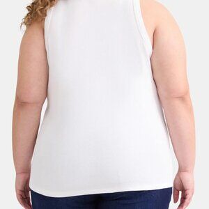 The Terra & Sky Women’s Plus Size High Neck Rib Tank Top in size 1X (16W–18W) is a flattering and comfortable basic designed for everyday wear. Made from soft, ribbed knit fabric with added stretch, this tank hugs your shape while allowing easy movement and all-day comfort. The high neckline offers extra coverage and a modern, on-trend look that layers beautifully under cardigans, jackets, or stands alone on warm days. With a straight hem and wide shoulder straps, it provides a smooth, secure fit that flatters a plus-size silhouette. Whether you're dressing it up or keeping it casual, this ribbed high neck tank is a versatile essential for any wardrobe. Machine washable and easy to style, it’s perfect for relaxed days, workouts, or layering under your favorite outfits.