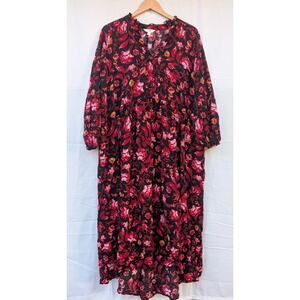 The Terra & Sky Women's Plus Size Printed Peasant Midi Dress in size 2X (18W-20W) is a stylish and versatile piece perfect for various occasions. With a beautiful floral pattern, long peasant sleeves, and a flattering V-neckline, this pullover dress is made from soft and comfortable rayon fabric. The midi length and A-line silhouette make it a flattering option for winter, fall, and spring seasons. Machine washable and easy to care for, this dress combines style and practicality for the modern woman. Dress is in good condition but does have a few small material pulls that can be seen in up close photos.