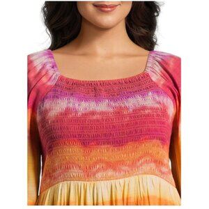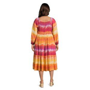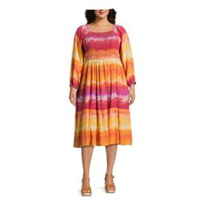 Terra & Sky Women's Plus Size Square Neck Smocked Dress, SUNRISE DYE/PEACHY KEEN