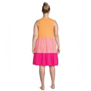 Terra & Sky Women's Plus Size Tiered Tank Dress Coral Rose
