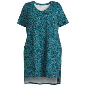 Terra & Sky Women’s Plus Size V-Neck Step Dress, SMALL DITSY FIELD/BLACK