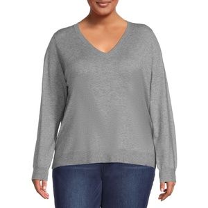 Terra & Sky Women's Plus Size V-Neck Sweater, Lightweight