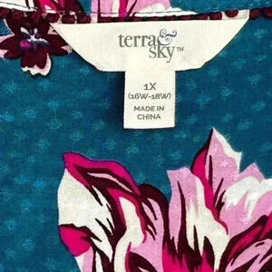 Terra Sky Women’s Plus Teal Floral Peplum Button Up Top Comfy 1X (16W-18W)