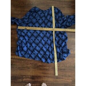 The product is a long sleeve V-neck blouse in a size 3X. Made from viscose material, the blouse features a button closure and a relaxed fit. The classic/fitted sleeves and bohemian theme make it a versatile option for all seasons. The blue color and intricate button accents add a stylish touch to this tunic-style top from the brand Terra & Sky. Ideal for women looking for a comfortable and fashionable addition to their wardrobe.