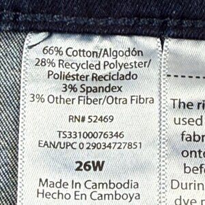 These Terra & Sky jeans are crafted from a comfortable cotton blend, providing durability and a flattering fit. Designed in a skinny style and dark wash blue color, they offer a modern look for plus frames. Suitable for casual wear, these jeans are made in Cambodia, ensuring a quality product.
