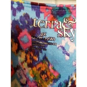 Terra Sky Women's Sz 2X 20/22 Vibrant Tribal Short Balloon Sleeve Jersey knit...