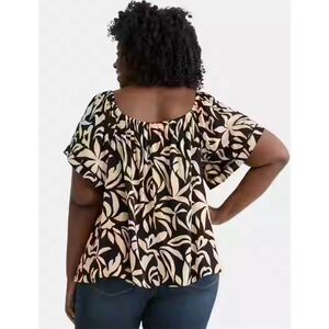 Terra & Sky plus peasant linen black and tan blouse plus size 3X