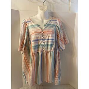 Terra Sky 3x striped pastel top butterfly sleeves. measures 27" chest, 30" long. 100 cotton.