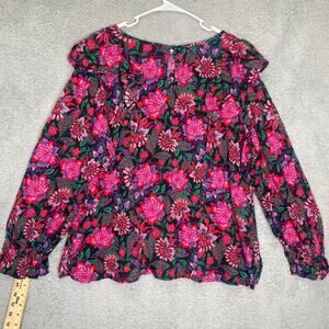 Terra & Sky womens 2X long sleeve pink blouse floral mulitcolor girly ruffle
