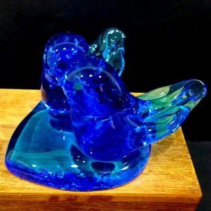 Terra Studio Blue Bird of Happiness Leonard 1993 blue glass paper weigh 3"H