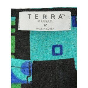 Terra Women's Abstract Print Top Multicolor Short Sleeve Bold Print Artsy Size M