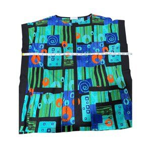 This vintage style top by Terra features a vibrant abstract print. It's suitable for professional settings where a pop of color is desired. In excellent condition, no tears and no stains.