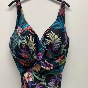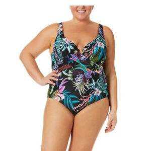 Terra and Sky Bathing Suit Black Floral One Piece Slimming Women's Plus Size 5X