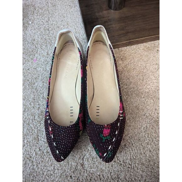 Terra plana anthropologie kitten heel pumps sz 7 leather and fabric
