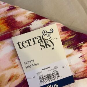 Terra sky 2x skinny mid rise pants new pink splatter pattern