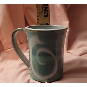 Terracotta Art Pottery Sea Green Mug with White Sea Serpent Swirl