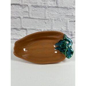 This vintage, handcrafted glazed bowl features an earthy terracotta base with a striking green glaze accent, offering both functional use and decorative appeal. The chili pepper shape brings the southwest into your décor!