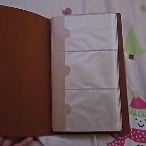 The brand is not visible, but this book has a leather - feeling finish and is about 2 inches thick