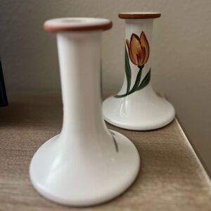 Terracotta Candlesticks Made In Portugal White Floral Set Of Two