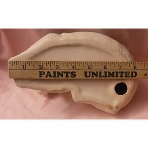 Small bit of painted missing on end of blue ribbon.