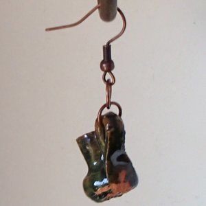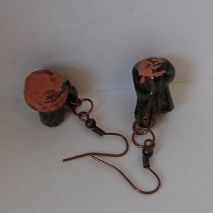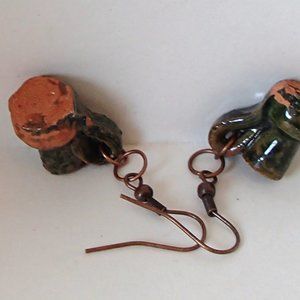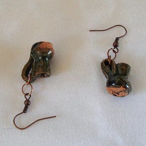 Terracotta Mexico Pottery OoaK Earrings Mini Glazed Handmade Copper Wires Rings
