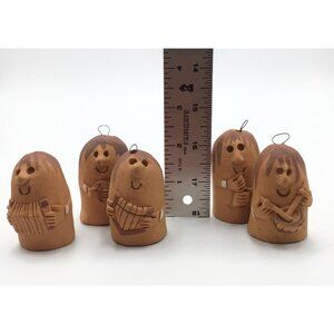 Terracotta Thumb Shaped Music Band Folk Art Ornaments Set of 5 Mariachi Handmade