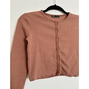 Terracotta ZARA Ribbed Button Front Cropped Sweater M