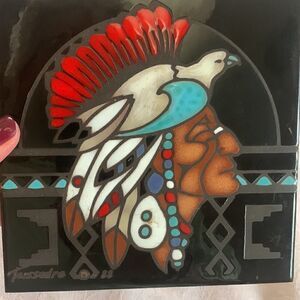 Ceramic tile/trivet made in Italy American Indian terra cotta