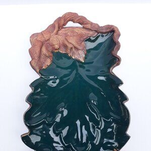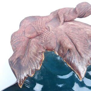 Terrafirma Pottery Tray, Green Glaze, Leaf & Acorn Design, Signed 1992