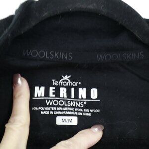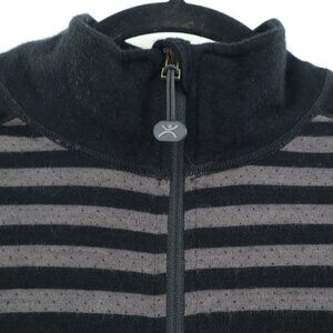 Terramar Merino Woolskins Striped Sweater Mens M Black Gray Winter Base Layer