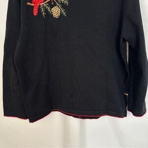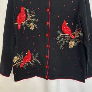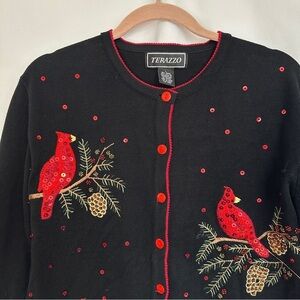 Terrazo Cardigan Sweater Women’s Size Large Holiday Cardinal Embroidered Beaded Bird. Button Up. In great preowned condition.