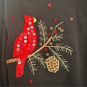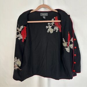 Terrazo Cardigan Sweater Size Large Holiday Cardinal Embroidered Beaded Bird