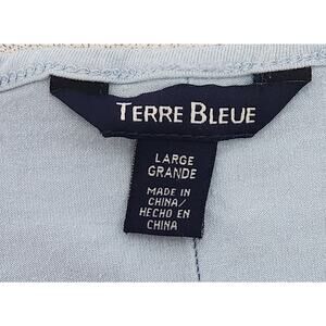 Terre Bleue Light Blue Shark Bite Hem Short Sleeves Top Large Lightweight Flowy