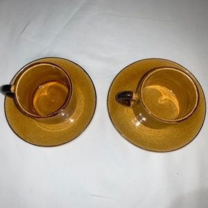 Mustard yellow espresso cups from Terre e Provence. Comes with 2 espresso cups as well as 2 saucers.