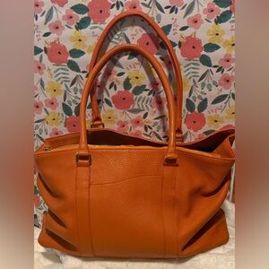 Terrida The Colorful Orange Leather Tote Bag Italy Double Handles Travel Purse
